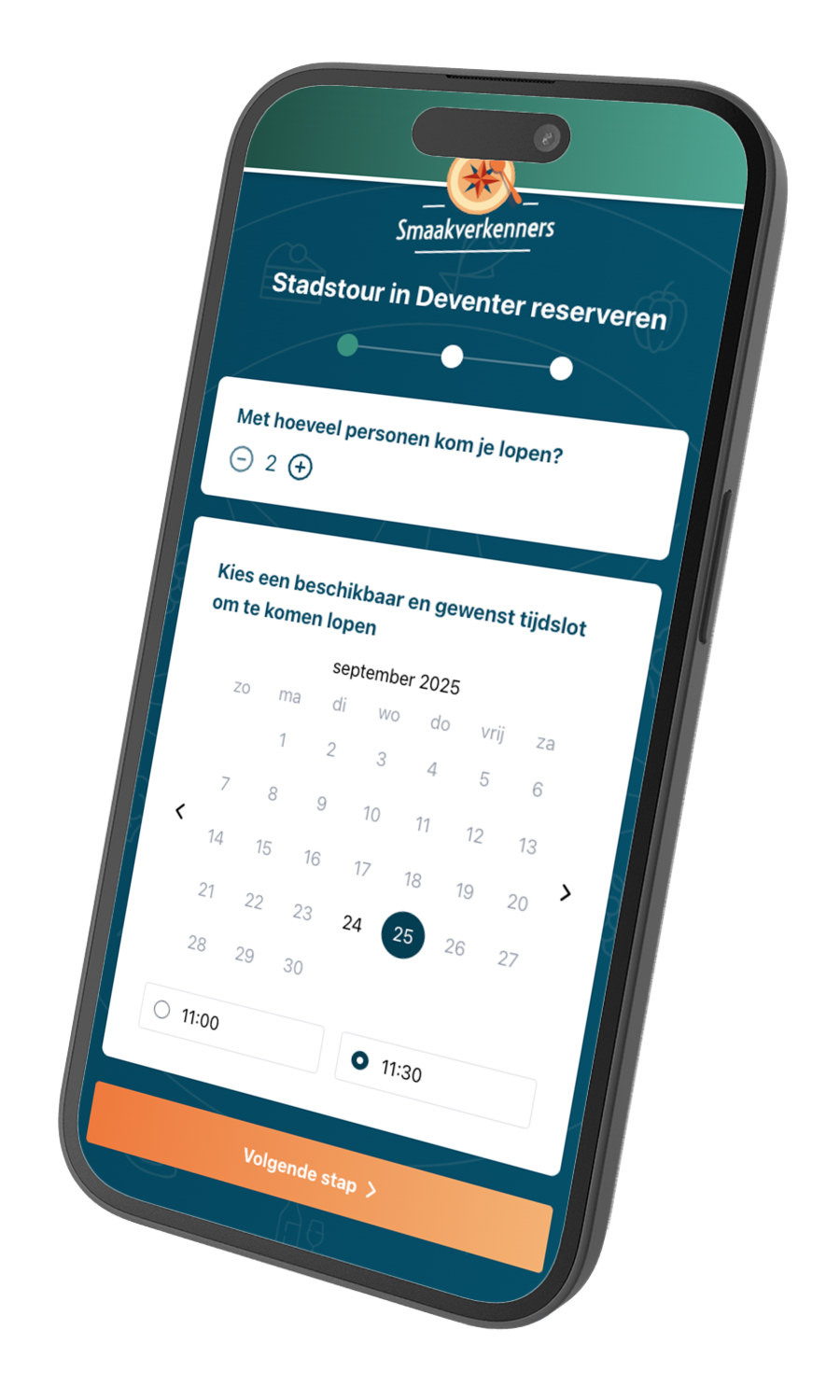 Voor Smaakverkenners ontwikkelden wij een online reserveringstool en backend die de culinaire stadstours van begin tot eind ondersteunt. Van het boeken van een plek en het doorgeven van dieetwensen tot automatische meldingen en AI-ondersteund klantcontact – alles komt samen in één gebruiksvriendelijk platform.